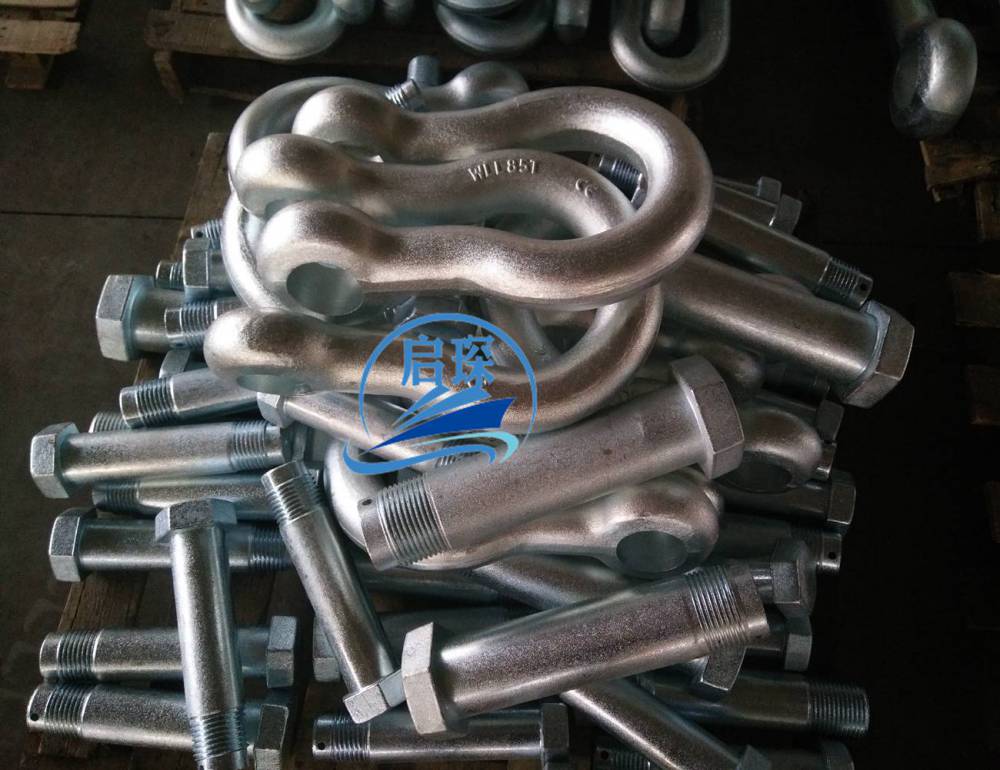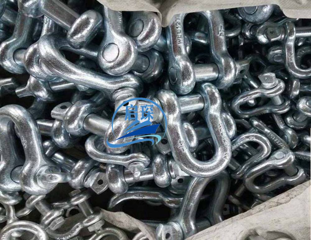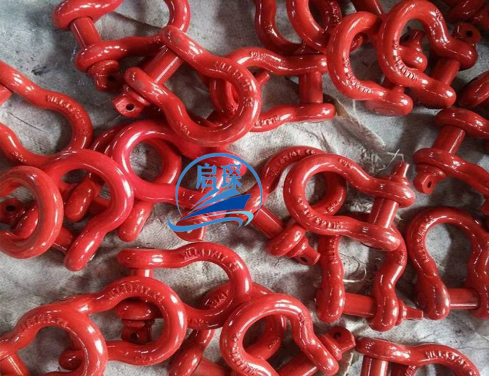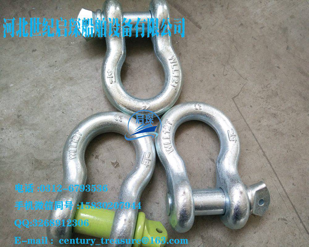 河北世纪启琛船舶设备有限公司能制造弓型卸扣,D型卸扣,圆型卸扣,高强度卸扣,D型索具卸扣,C型索具卸扣,船用卸扣等等,并可根据您的要求单独设计制作大吨位用卸扣产品。美式卸扣的出现大大提高了钢丝绳的耐磨性。 可以与高强度人造纤维索具或钢丝绳索具相连接 增大卸扣弓形半径,使索具承载表面积增大58%,用套环保护索具。 将索具的有效拉力提高15%。较之国标卸扣,因体积小拉力大而更受欢迎。